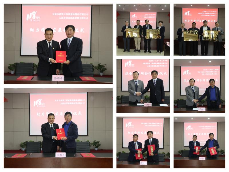 5月6日下午,公司在五层报告厅隆重举行bg大游118周年校庆产学研合作签约暨座谈会。公司党委刘润祥副书记、员工办公室杜鲲主任出席,太原市建筑工程质量检测站有限公司、太原市荣泰筑路材料有限公司等企业代表8人,公司班子成员、系、部、中心负责人和教师代表参加了座谈会,会议由公司党委副书记芦倩主持。