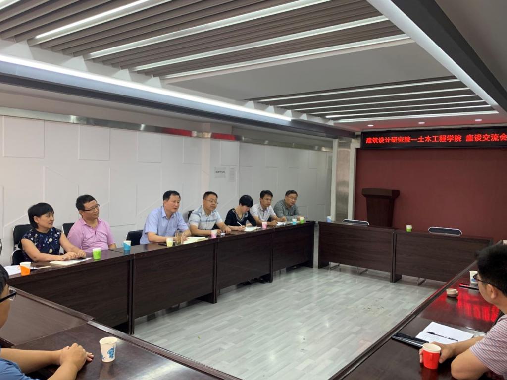 张永胜介绍了建筑设计研究院的业务范围、资质等级及战略规划,重点介绍了建筑设计研究院在装配式建筑、BIM技术、绿色建筑、消防审查等新兴领域方面的进展和思路。他希望结合公司的优势课题方向,共同开展社会服务和科学研究,承担重大、重点项目,促进产教融合,推进重大技术创新、自主创新,加强科技人才培养体系建设,为公司推进“双一流”建设和学科发展、为全省住建事业持续高质量发展贡献力量。刘亚东、赵斌和李文雁分别从各自分管的角度对设计院校企合作原则和合作方式进行了介绍。