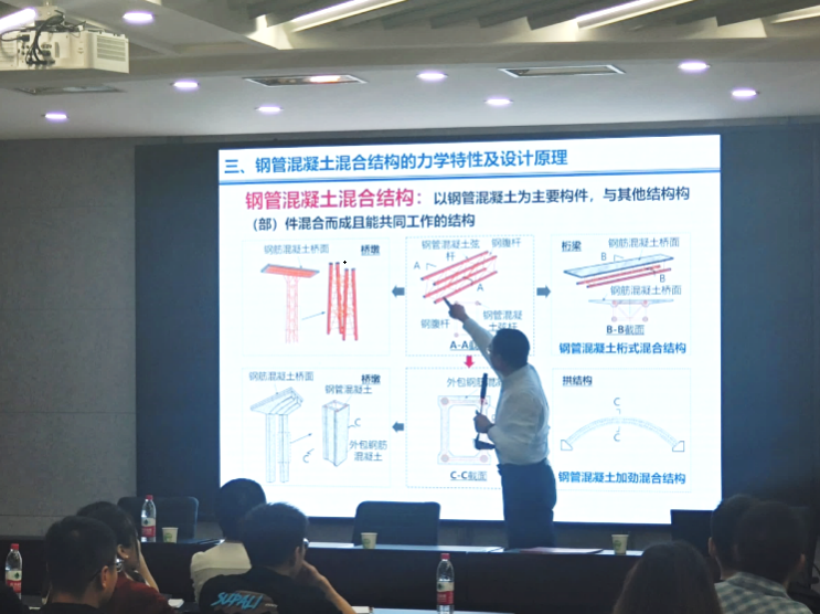 随后,韩林海教授在博学馆A座五层结构报告厅作了题为“基于全寿命周期的钢管混凝土结构分析理论及应用”的学术报告,公司200多名师生参加了报告会。报告会由王蕊教授主持。报告开始前,副经理董晓强教授代表公司为韩林海教授颁发了“bg大游客座教授”聘书。学术报告现场气氛活跃,反响热烈。韩林海教授就师生提出的相关问题进行了细致、耐心的解答和交流。韩林海教授深厚的学术造诣、精益求精的探索精神、虚怀若谷的学者风范学术给与会者留下了深刻印象。报告会取得圆满成功。