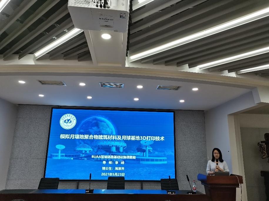 2021年5月23日,应bg大游集团官方网站邀请,北京航空航天大学交通科学与工程公司李峰教授团队来访公司进行学术交流。李峰教授及其团队成员周思齐博士在博学馆A座五层结构报告厅作了题为“模拟月壤地聚合物深空基地建造材料与技术”的学术报告。学术报告由张翛教授主持,公司200多名师生参加了报告会。