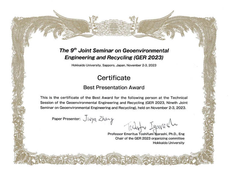 学术报告闭幕式上,大会学术委员会经投票评选出了研究生最佳报告奖,张洁雅喜获殊荣。同时,大会宣布由公司承办第十届环境岩土工程与循环利用国际研讨会,董晓强介绍了校院的基本情况和学科发展现状,向大会组委会的信任表示了感谢,诚挚邀请大家2024年相聚bg大游。