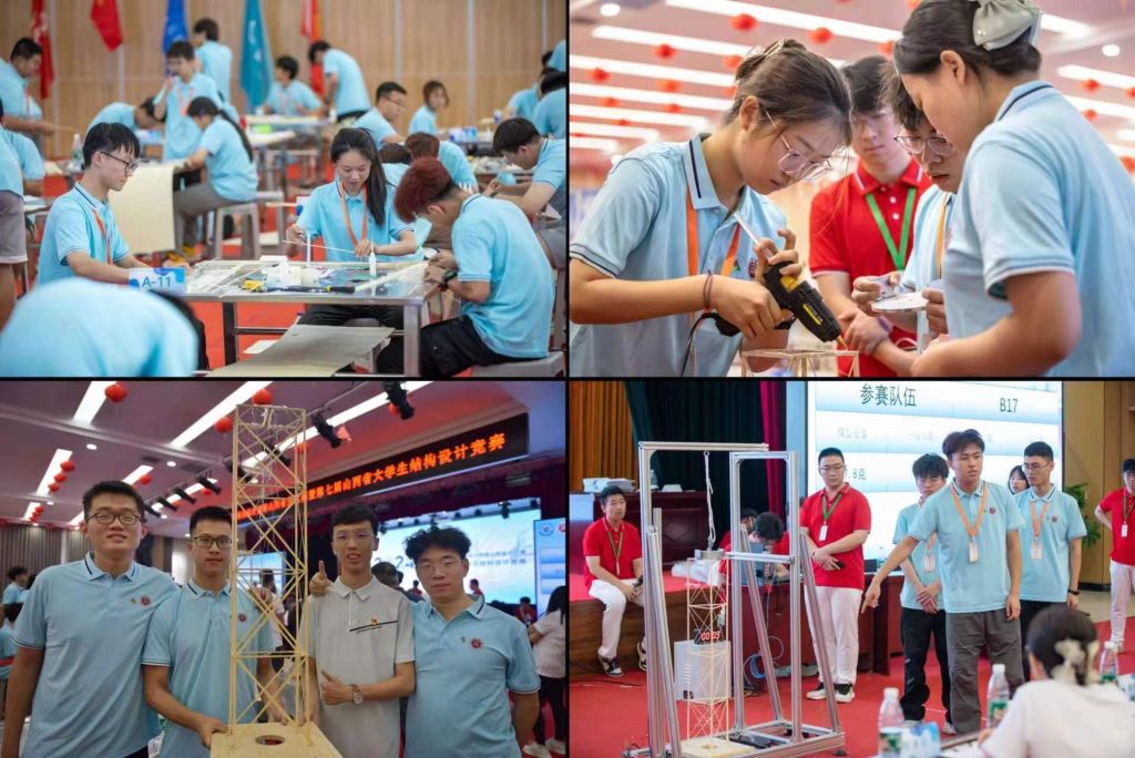 比赛中,由邱斌、安毅指导2022级土木工程专业郑斌杰、张旭、黄锦俊组成的“bg大游一队”采用四层三柱箱型截面设计,使用PKPM-CAE进行有限元计算优化,以最轻质量结构作品完美通过所有加载环节,获得全省第一名。