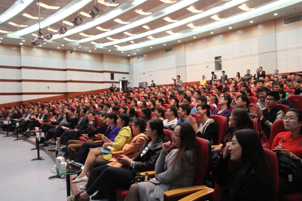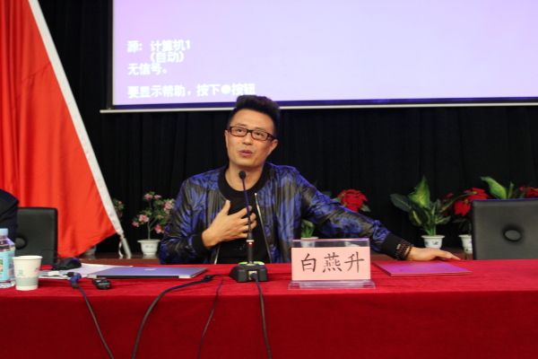 讲座正式开始,白燕升首先从关于朱元璋的一个民间故事中,指出每个人应该常怀感恩之心,并“敬畏天地人”,因为“经典就是我们民族中的DNA”。在当代社会,我们最需要敬畏传统,从昆曲申遗、华山老腔的思考,到对裴艳玲、胡蝶、坂东玉三郎等著名艺术家成长之路的追忆;从自己赴美游学,参观哈佛大学,斯坦福大学,西点军校的经历感悟,到对不同国家之间艺术传承态度的思考,白燕升表示传统文化是人类智慧和文明的结晶,它为民族复兴提供强大的精神资源,为人类开出救治各种危机的文化良方,使大家更好的理解了传统文化的重要性。当代青年员工,决不能在这个喧嚣而浮躁的时代,丧失目标,迷失自我,而要坚定理想与信念,心中常怀敬畏,向艺术致敬,向传统致敬,真正成长为有抱负,有担当的青年栋梁。白燕升诙谐幽默的语言,富含哲理的话语,丰富深刻的内容赢得了在场师生阵阵热烈的掌声。
