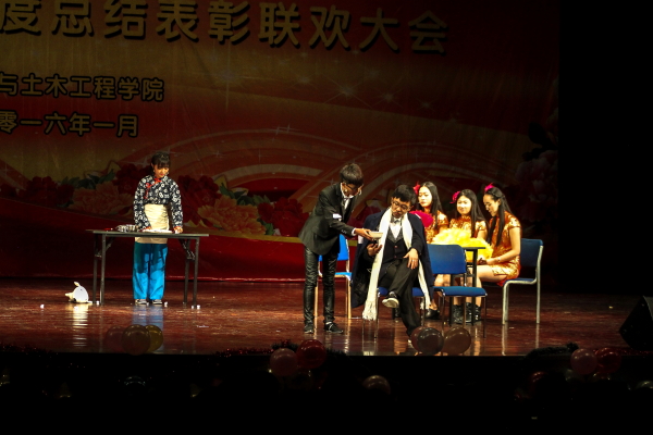大会共分3个篇章。在第一篇章《壮哉建工》中,筑乐团演唱的《say something》用唯美的歌声给大家带来了澄净的听觉盛宴;小品《新上海滩》以上世纪三十年代旧上海为北京,演绎了一出搞笑幽默、发人深省的爱情悲剧;土木1501班全体同学带来的《手影舞》让我们体验了有苦有乐、积极向上的老员工活。
