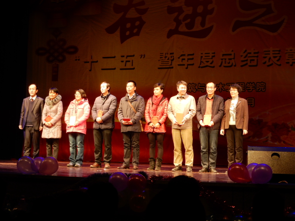 大会对“十二五”先进集体和个人进行颁奖。专家杜湧、陈幼佳接受颁奖后,分别对教师、员工送去了2016年的祝福和期望。杜湧老师以歌曲《小草》表达了自己对建工的一颗赤子之心,希望每一位建工人能像小草那样坚韧顽强、生机勃勃,平凡中透露着伟大。