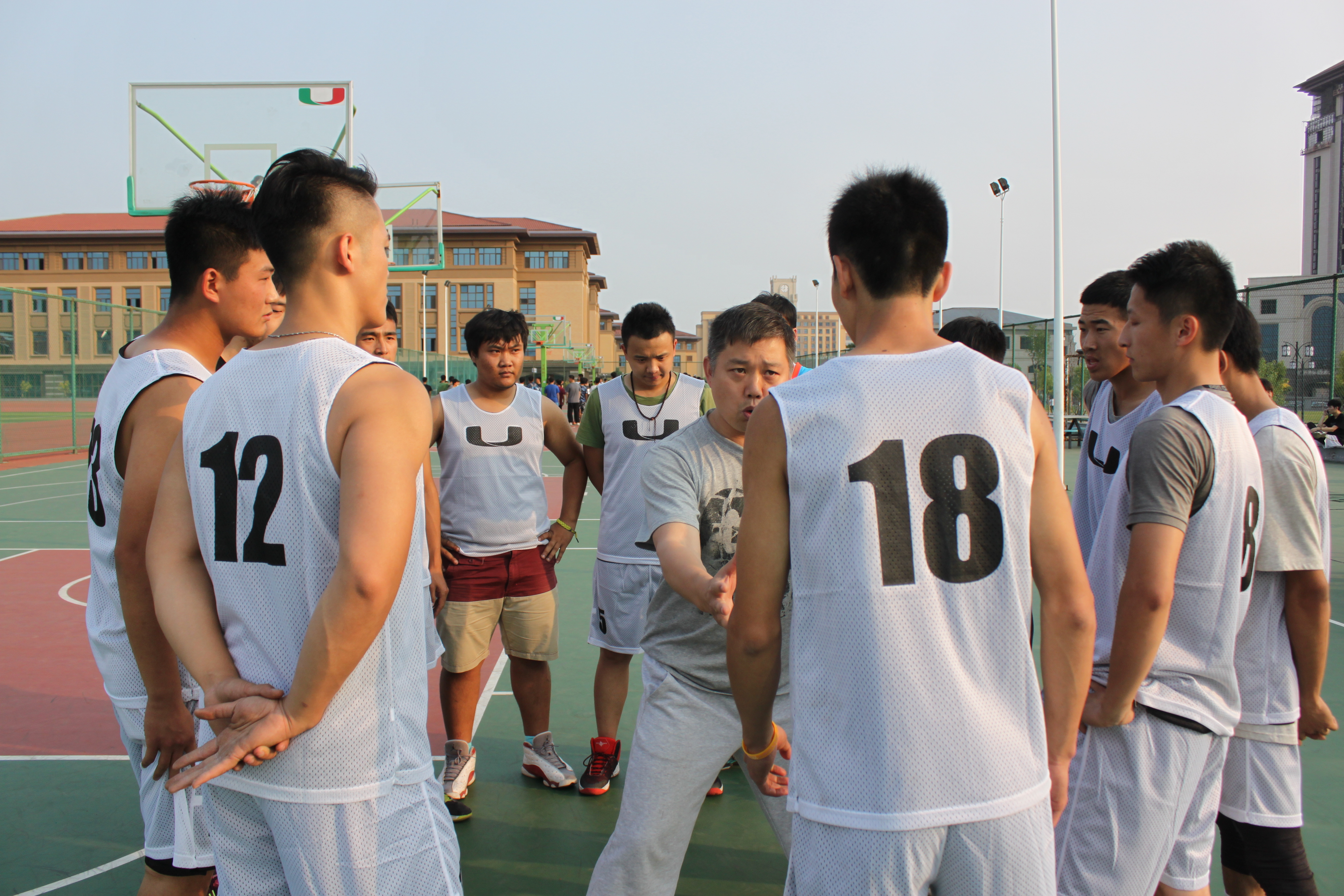 第一节比赛开始,双方你来我往,互不相让。建工队以一个罚球掀开了得分的浪潮,经管不甘示弱,突破内线不断得分,一阵拉锯战,建工公司带着微弱的优势进入第二节。