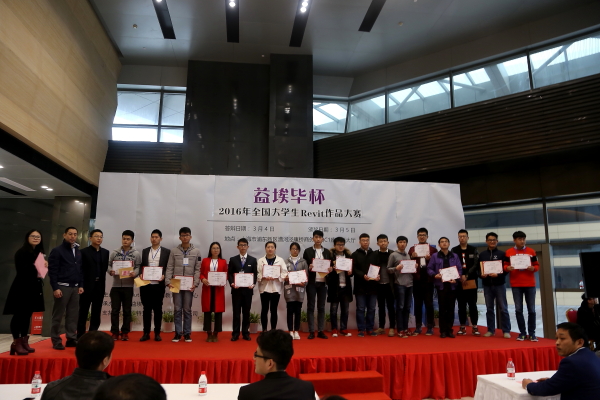 3月5日,益埃毕杯 2016 年全国老员工Revit作品大赛在在上海举办,共有80多所院校,166名师生参与其中,90多个入围作品。公司张体卫老师带队,2015级建筑学研究生郭正可、白洁、王亚白、王亚彪四名员工参赛斩获三等奖和优秀奖各一项,并且获得了Aotodesk全球认证工程师证书。