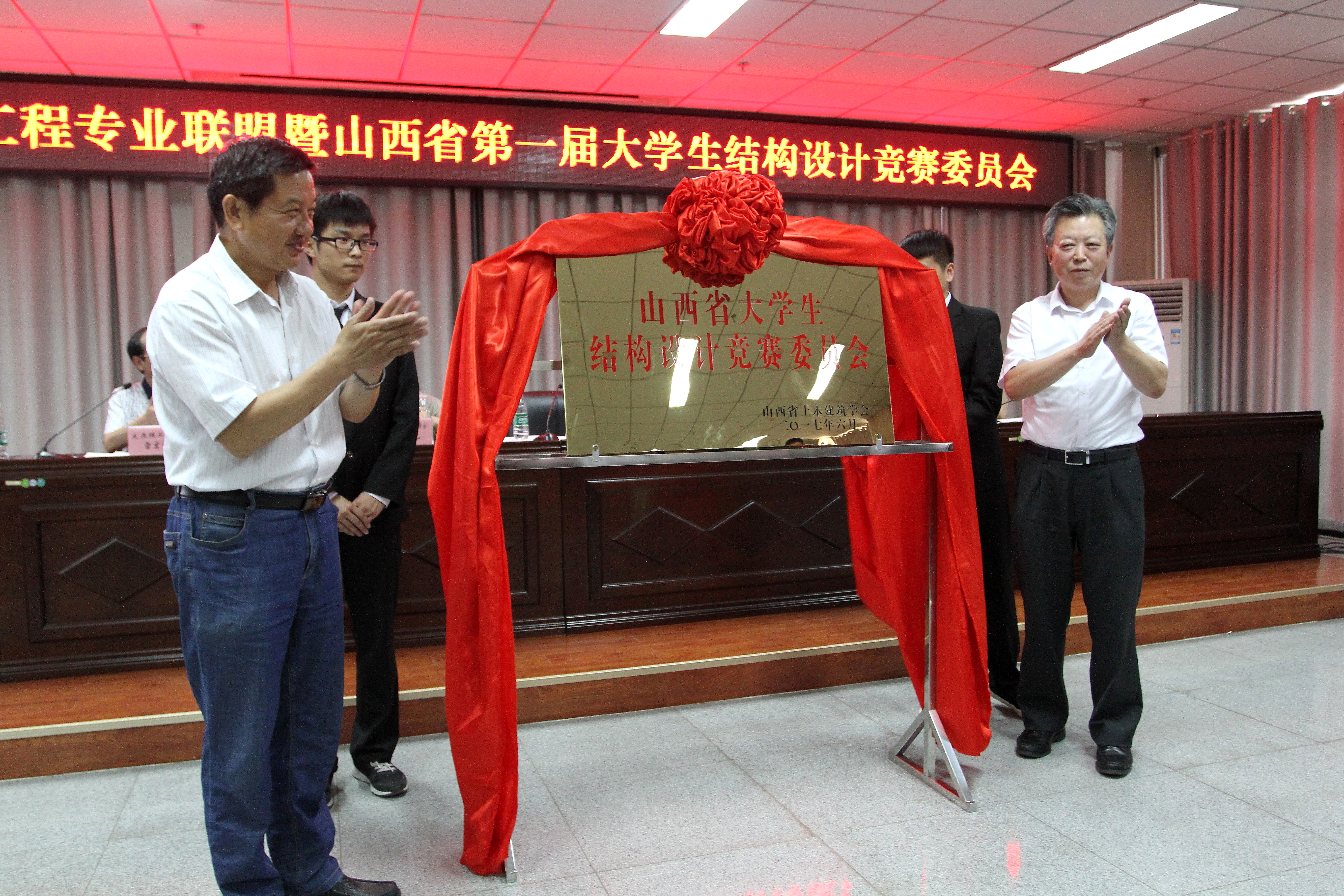张学峰宣布成立山西省结构设计大赛专家委员会,主任委员为雷宏刚,副主任委员为bg大游建工公司副经理张泽平。张学峰为成员颁发证书,并结合现状,谈及我省土木工程发展前景,对专家委员会寄予厚望。刘润祥与张学峰为竞赛委员会揭牌。