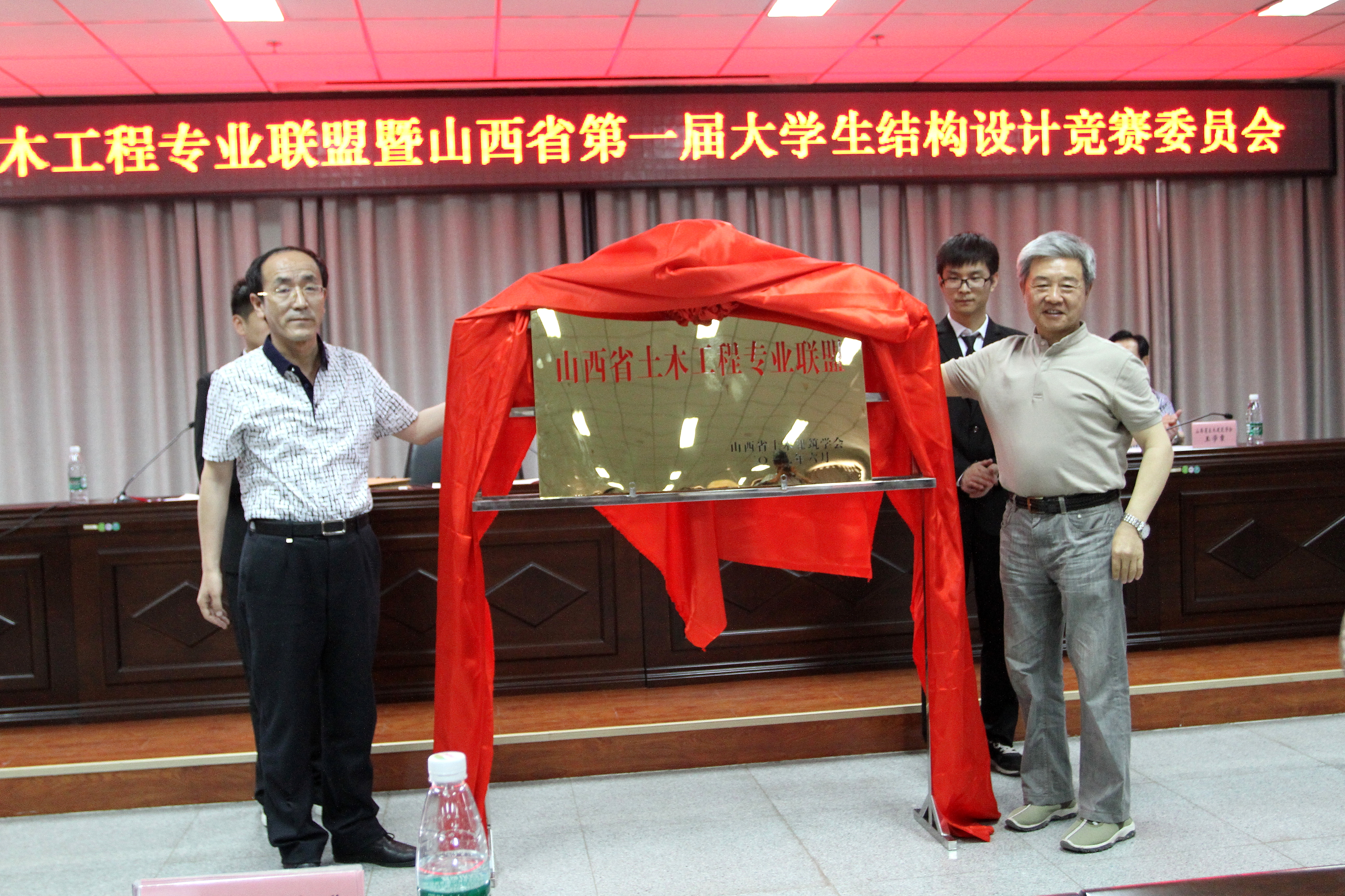 郝增元宣布山西省土木工程专业联盟成立,并宣读联盟协议。郝增元与雷宏刚为专业联盟揭牌。之后联盟各单位代表有序上台签订协议。