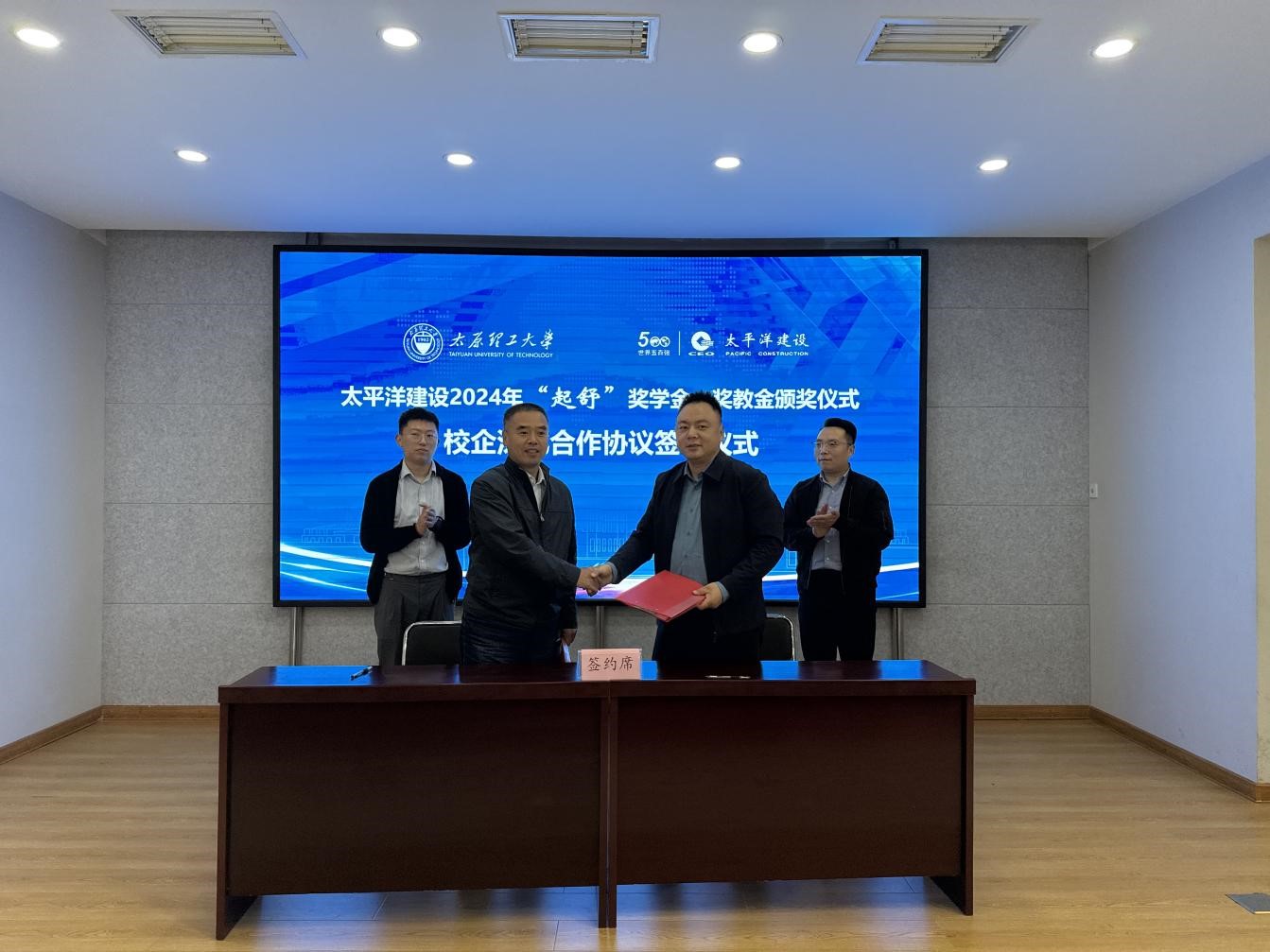 颁奖仪式上,赵惠民作为公司代表和太平洋建设集团代表于伟共同签署校企深化合作协议,在巩固前期公司与企业间合作成果的基础上,把合作向深度和广度向前推进了一大步。