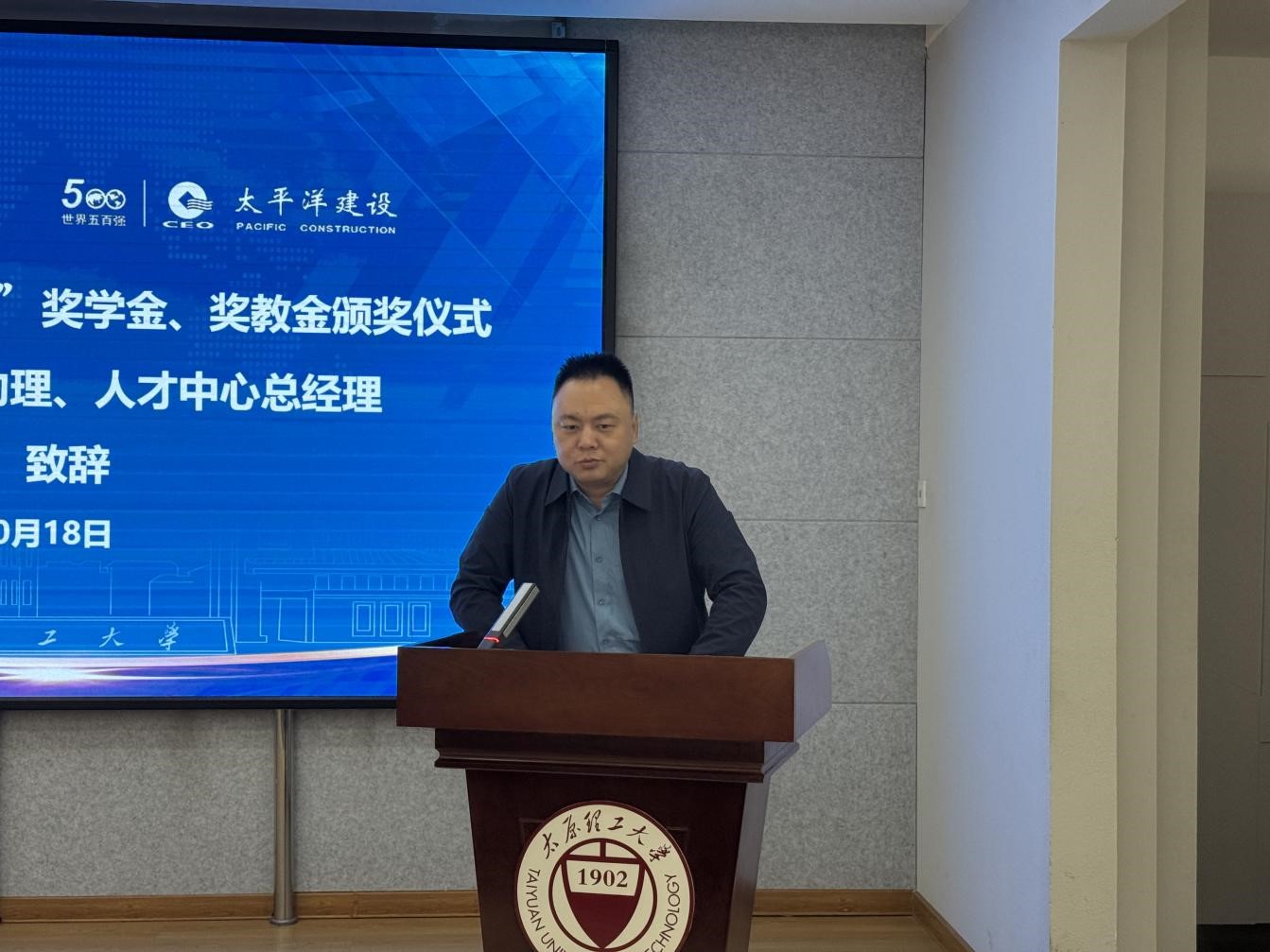 颁奖仪式上,于伟代表太平洋建设集团向本次获得奖教学金的师生表示最热烈的祝贺。他强调,太平洋建设集团作为世界500强的优秀企业,始终秉承着敬业精业、向上向善的品质,“起舒”即为从今天的独树己见、走己之路,到明天的舍得给予、舍己舒群,该奖学金的设立是为了进一步推动教育事业发展,加强校企之间的联系,鼓励在校师生勤奋工作、刻苦学习、全面发展,促进员工高质量就业,希望在今后持续巩固提升“起舒”奖教学金的良好成果,同时不断扩大院企合作范围,希望以此带动更多的社会力量参与到大学教育中,促进产学研深度融合。