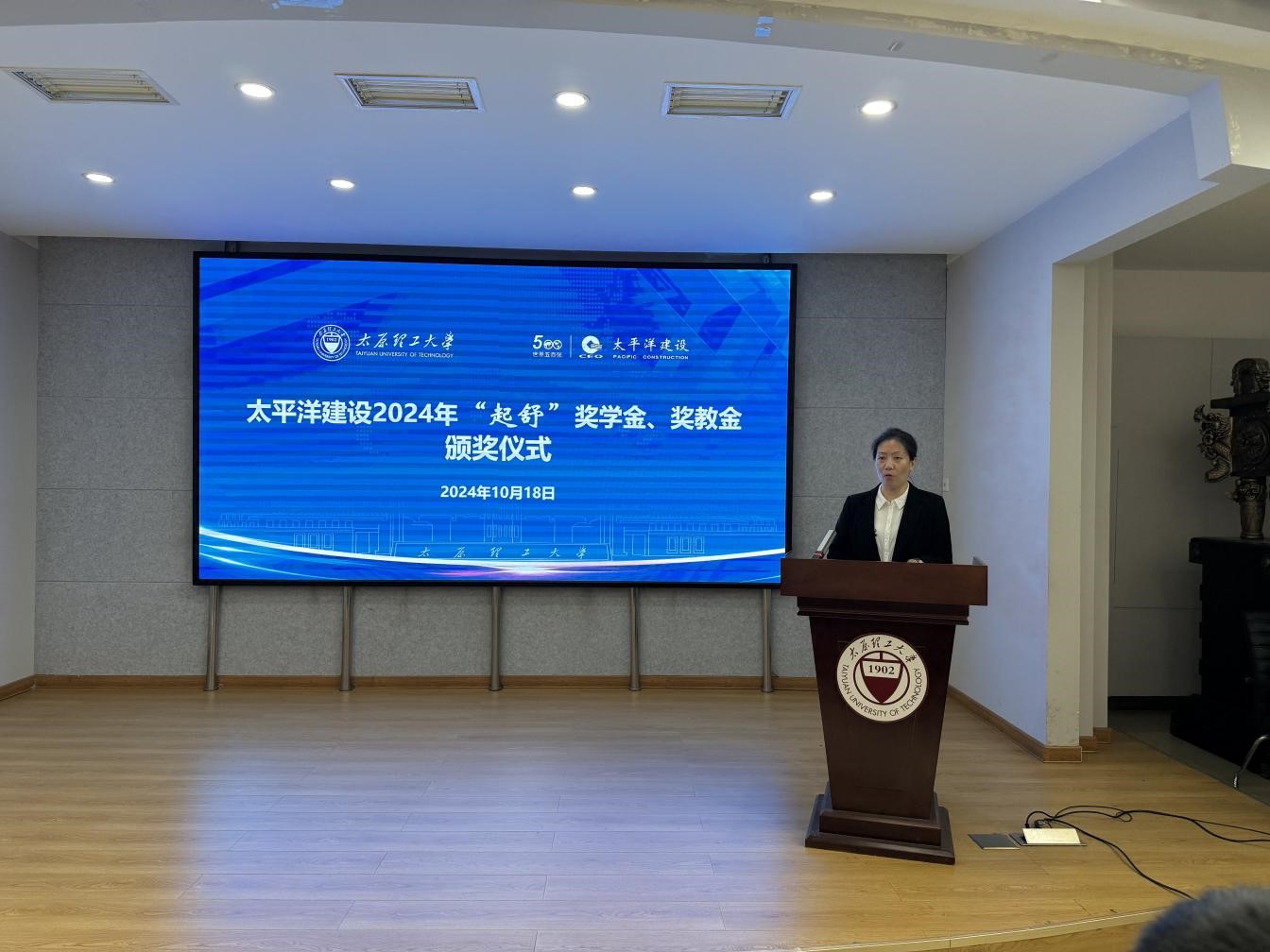 10月18日上午,bg大游集团官方网站2024年太平洋建设“起舒”奖学金、奖教金颁奖仪式于迎西校区博学馆A座五层会议室举行。出席颁奖仪式的嘉宾有太平洋建设集团总裁助理、人才中心总经理于伟,人才中心总经理助理郑安冉,江海建设人才中心副总经理黄春阳,校招生与就业工作部副部长黄雨田,公司党委书记赵惠民,党委副书记芦倩等企业和公司代表以及奖学金、奖教金获得者、bg大游集团官方网站本科生各年级代表参会。颁奖仪式由芦倩主持。