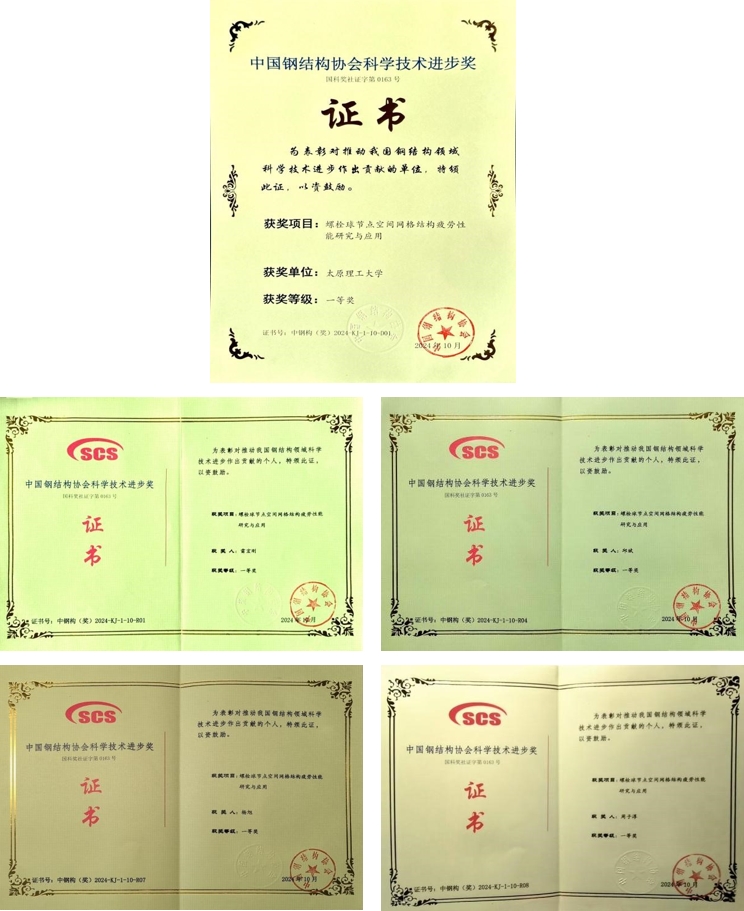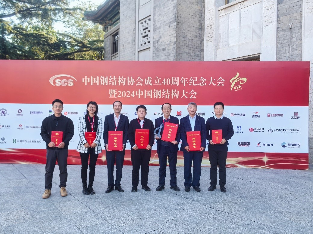 2024年10月21-22日,中国钢结构协会成立四十周年纪念大会暨2024中国钢结构大会在北京召开,会上举行了隆重的中国钢结构协会科学技术进步奖颁奖仪式。公司雷宏刚教授率领的钢结构与空间结构研究中心团队完成的项目“螺栓球节点空间网格结构疲劳性能研究与应用”荣获中国钢结构协会科学技术进步奖一等奖。这是团队继2022年获奖项目“悬挂吊车作用下大跨度焊接空心球节点网架结构疲劳性能及设计方法研究与应用”之后,再次荣获一等奖,充分奠定了雷宏刚教授团队在空间网架结构疲劳性能研究方面的重要地位,得到了钢结构行业的高度认可!