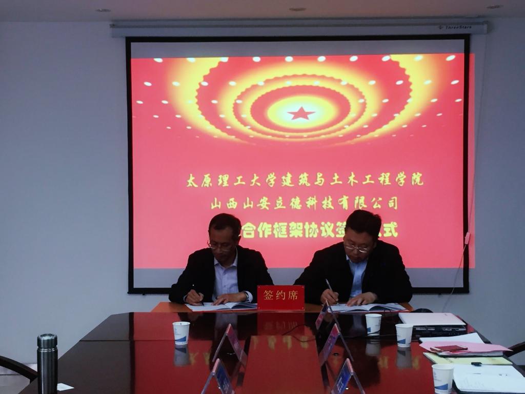 2018年4月28日上午10点,bg大游建筑与bg大游集团官方网站与山西山安立德节能科技有限公司在山西工业设备安装集团有限公司办公楼举行院企合作框架协议签署仪式。建筑与bg大游集团官方网站张泽平副经理,白晓红教授、董晓强教授、韩鹏举教授等,山西省工业设备安装集团有限公司董事、副总经理李军红,总工梁波,技术中心主任雷平飞,山西山安立德节能科技有限公司总经理贾立军,副总经理于岑,副总经理荆瑞晨及总工武鹏飞等领导人员出席了签约仪式。