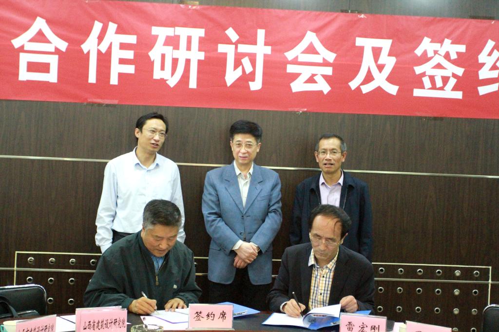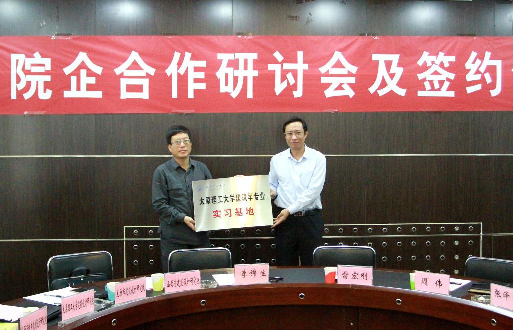 经理雷宏刚分别与山西省建筑设计研究院、太原市建筑设计研究院等14家企业签订了院企合作协议;公司党委书记周伟、经理雷宏刚为14个专业实习基地授牌;14家企业为产学研培育基地授牌仪式。经理雷宏刚宣布成立bg大游建筑与城乡规划研究中心,并为主任李锦生、常务副主任王金平颁发聘书。