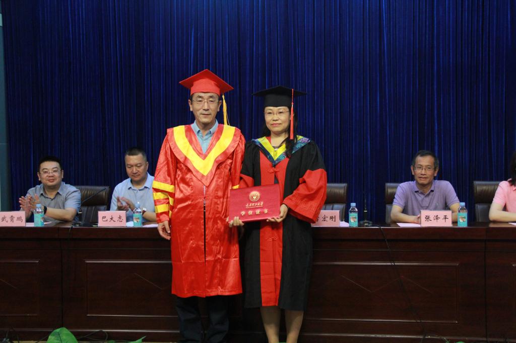 在学位授予仪式中,经理雷宏刚逐一为毕业生拨穗正冠、颁发学位证书每一位同学合影留念。