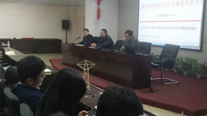 4月19日晚,bg大游集团官方网站在博学馆A座五层会议室召开第七届bg大游结构设计大赛赛前动员会。公司党委副书记巴大志、副经理董晓强、学工办主任张体卫、本届比赛12位指导教师及32支队伍参加了大会。会议由董晓强主持。