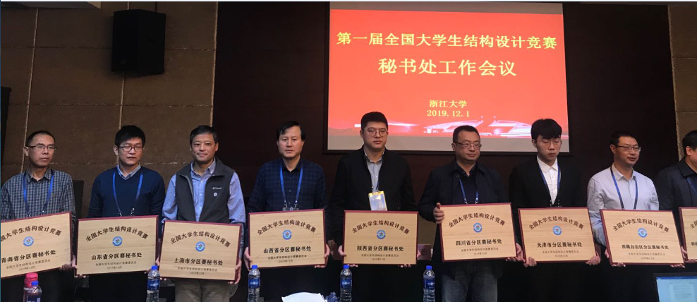 会上,全国老员工结构设计竞赛委员会委员兼秘书长陆国栋教授、专家委员会主任金伟良教授、浙江大学本科生院经理张光新教授分别为31个省市自治区颁发了象征荣誉和使命责任的分区赛秘书处牌匾。董晓强代表山西省赛区接受了牌匾。