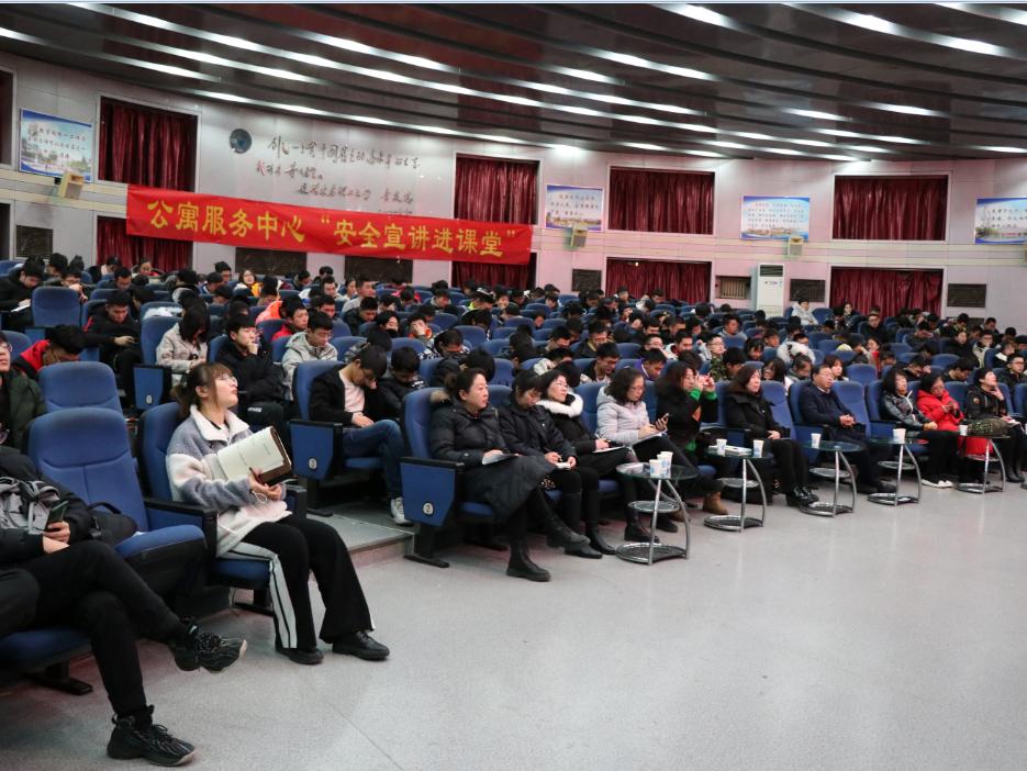 2019年12月30日,bg大游集团官方网站在思贤楼三楼召开“员工公寓安全宣讲进课堂”教育大会,后勤保障处副处长、公寓服务中心主任张文基,公寓服务中心副主任、党支部书记景晓芳,副主任刘玉花等领导出席,及公司辅导员和2019级全体员工参加。