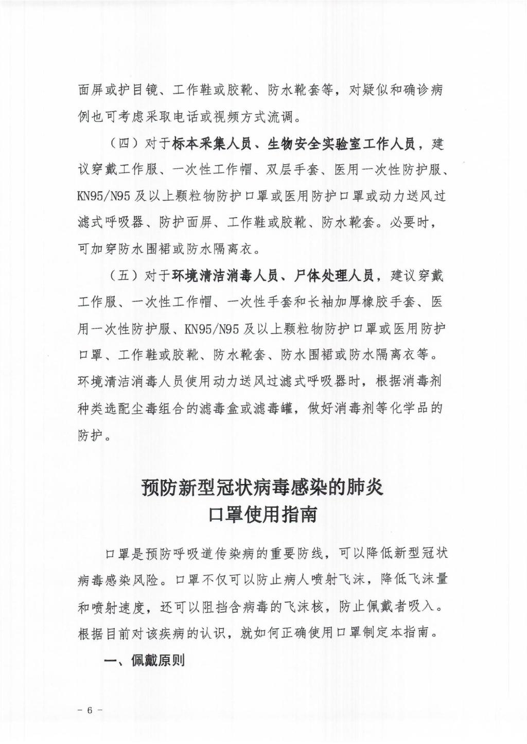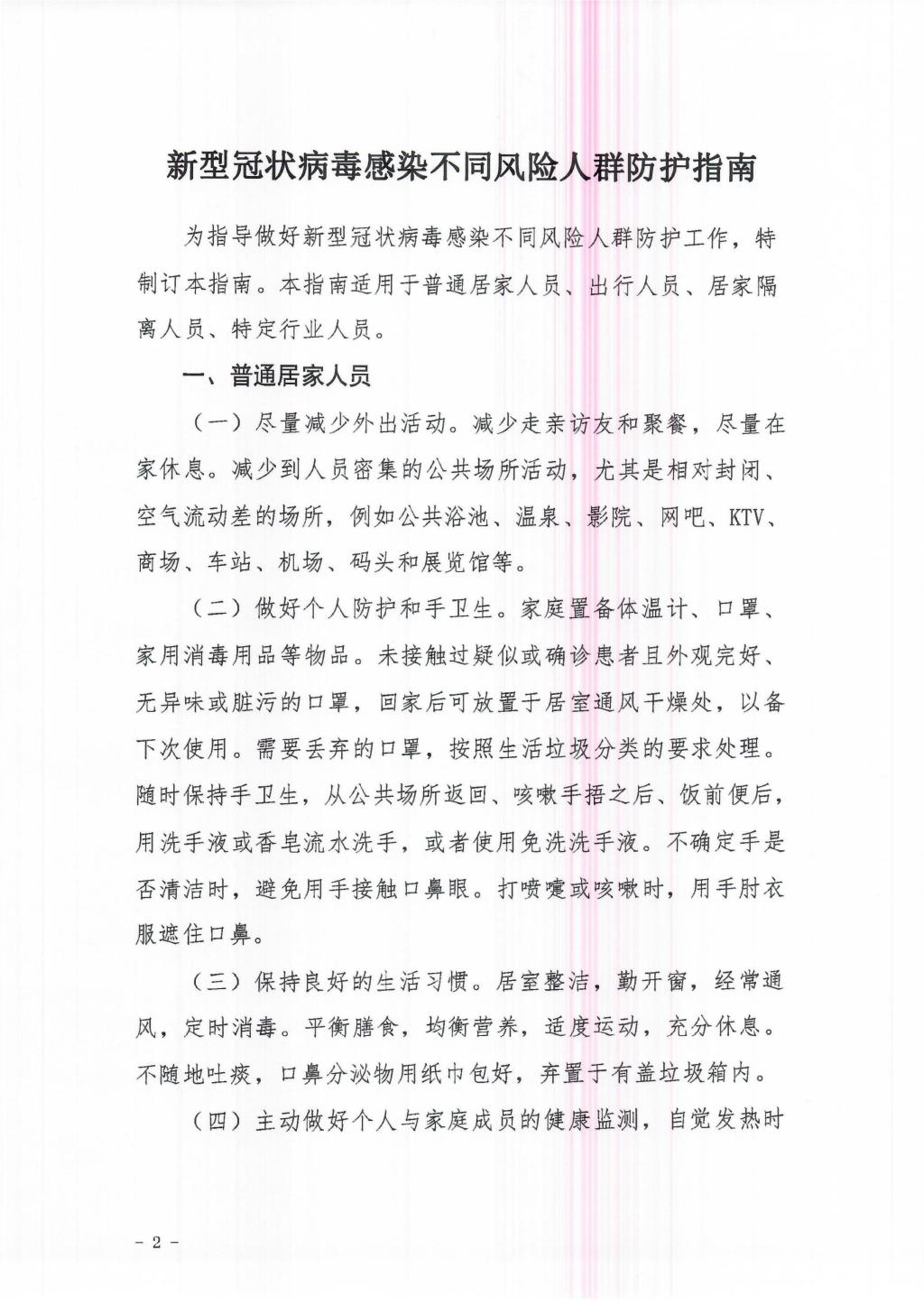 关于印发新型冠状病毒感染不同风险人群防护指南和口罩使用指南的通知