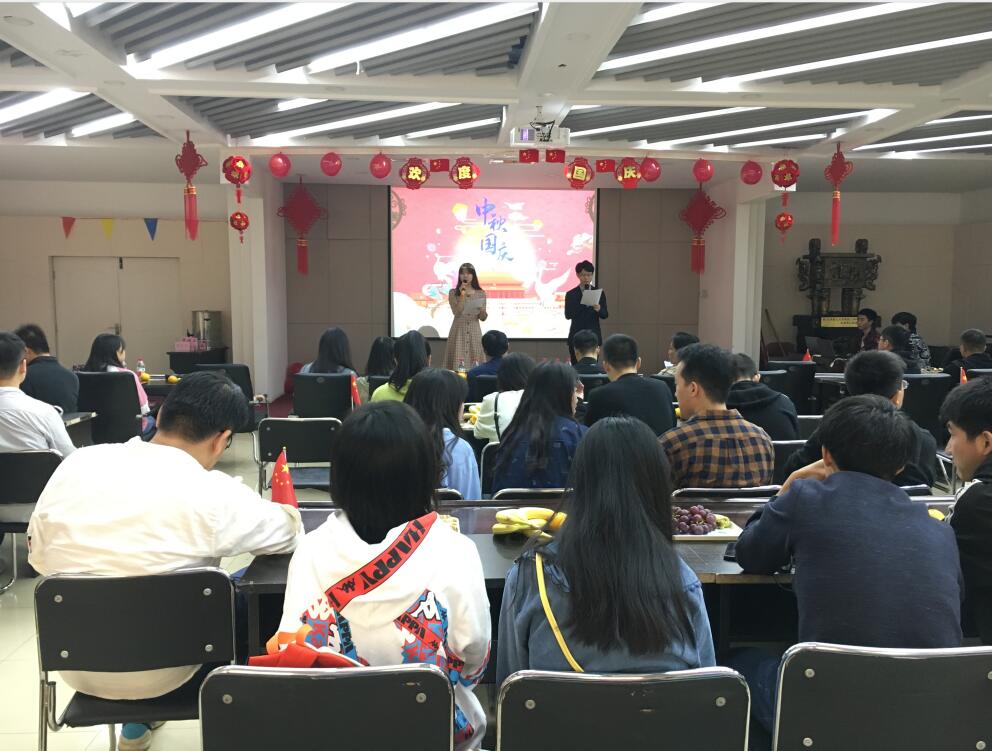 为丰富员工的文化生活,唱响美好新时代,向新中国成立七十一周年献礼,公司于10月1日上午在土木馆五层会议室举办“庆国庆贺中秋”迎新联欢会,公司党委书记周伟、党委副书记芦倩及全体辅导员与本硕员工共聚一堂,同庆同贺。