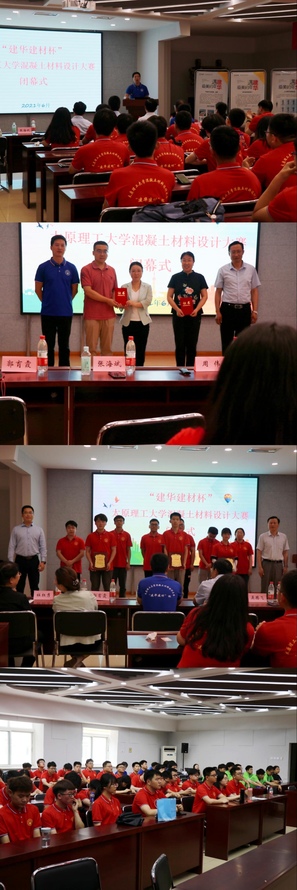 2021年6月5日-6日,bg大游“建华建材”杯混凝土材料设计大赛在bg大游迎西校区博学馆举行,本届比赛由创新创业公司、bg大游集团官方网站承办,建华建材(山西)公司、山西省建筑学会建筑材料专业委员会协办。 建华建材西北公司人力资源经理吴腾飞、建华建材集团-山西建华、运城建华技术部经理赵海斌,建华建材集团-山西建华人力资源部主管梁博,公司创业创业公司经理郭菲、公司党委书记周伟、副经理(主持工作)董晓强、副书记芦倩出席开幕式。