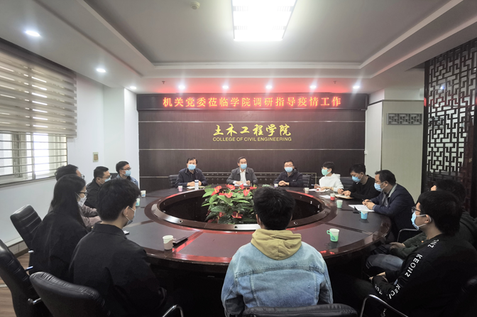 2022年4月14日下午,受公司党委委托,校工会主席秦晓怀和国有资产管理处王文峰代表机关党委莅临bg大游集团官方网站就封校期间疫情防控、实验室安全等工作进行了现场考察,bg大游集团官方网站经理董晓强、建筑工程系负责人、在校部分教师及研究生代表共同参加了调研。