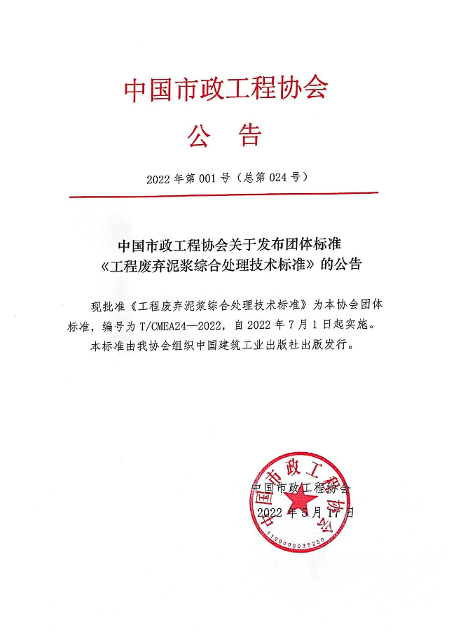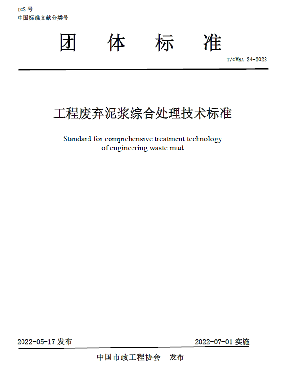 为推动上下游产业链的融合创新,促进新技术、新产品的应用,提高我国废弃泥浆的综合利用水平,经中国市政工程协会批准,由中建工程产业技术研究院有限公司、中建安装集团有限公司、台州市鼎正再生资源回收有限公司、bg大游、中建三局集团(深圳)有限公司、深圳大学、浙江大学、中水电四局南方(珠海)工程有限公司、中国建设计研究院有限公司等单位编制团体标准-《工程废弃泥浆综合处理技术标准》。