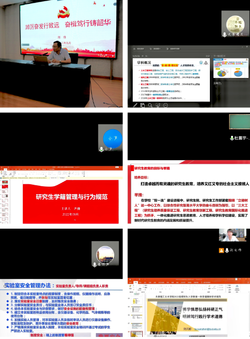 为增进研究生新生对于学科、专业的认知,明确专业培养计划和要求,了解科学研究的方式方法,更快更好的适应研究生学习生活,9月14日-16日,通过专题讲授与网络教学方式相结合,在2022级研究生中深入开展新生入学集中主题教育,开启了研究生“入校第一课”,取得了良好的育人效果。