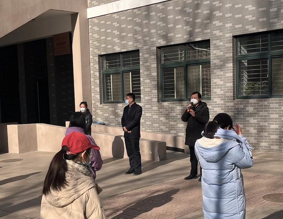 战疫不松懈,齐心筑防线。12月15日上午,公司在博学馆A座楼前现场召开在校生疫情防控会,公司党委书记武佐君,经理董晓强,党委副书记芦倩出席,在校本研员工参加。会议由芦倩主持。