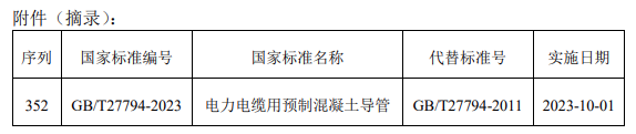 公司岩土与地下工程研究所韩鹏举教授参编的国家标准-《电力电缆用预制混凝土导管》 (GB/T27794-2023) 于2023年03月17日发布,2023年10月01日实施。
