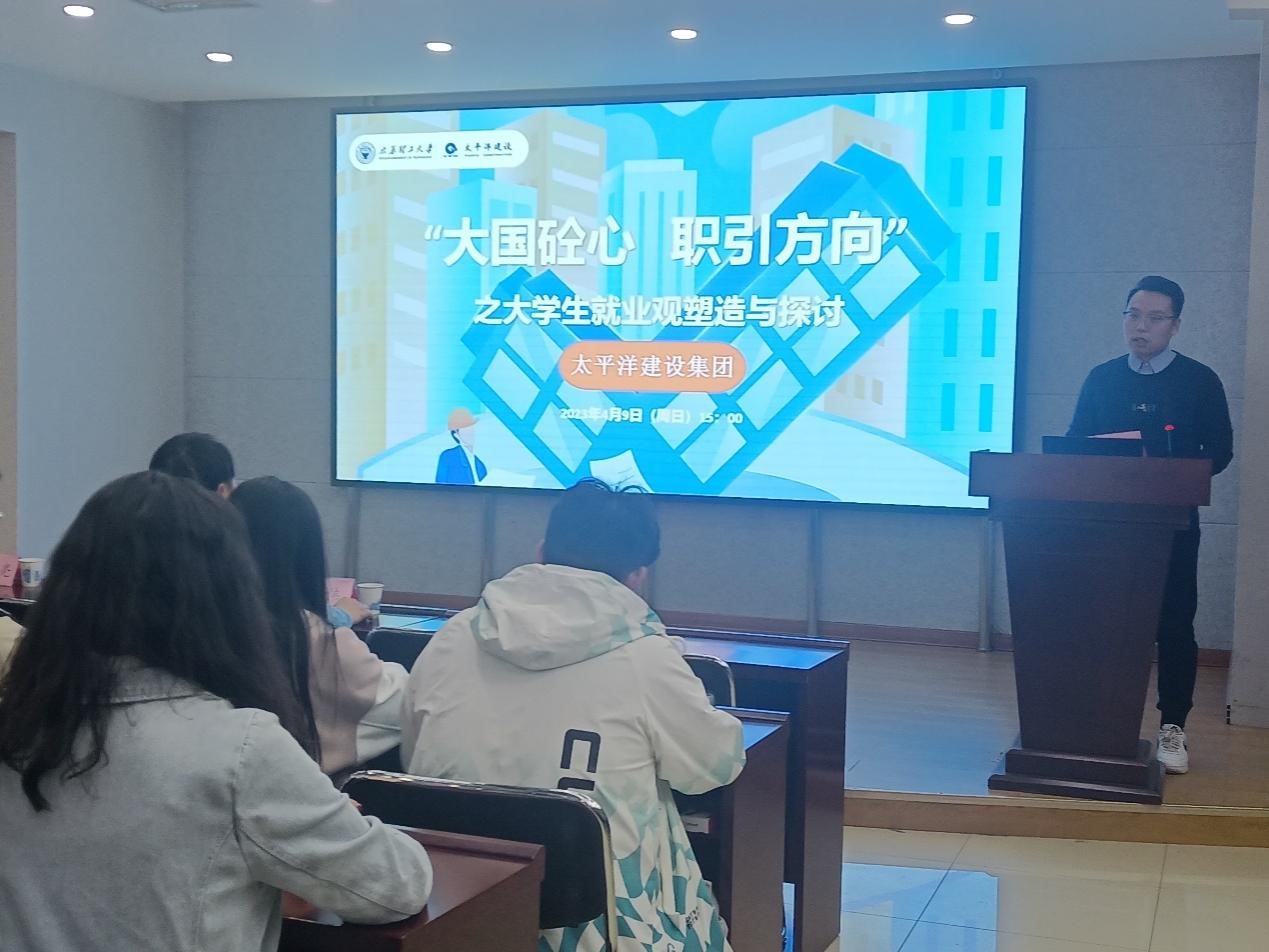 4月9日,公司开展“大国砼心,职引方向—老员工就业观塑造与探讨”专题讲座,主讲人为太平洋建设集团人才中心总经理于伟、太平洋两湾建设集团总裁程静亮,出席讲座的还有太平洋建设集团人才中心总经理助理郑安冉。讲座由bg大游集团官方网站就业专员张维庆主持。