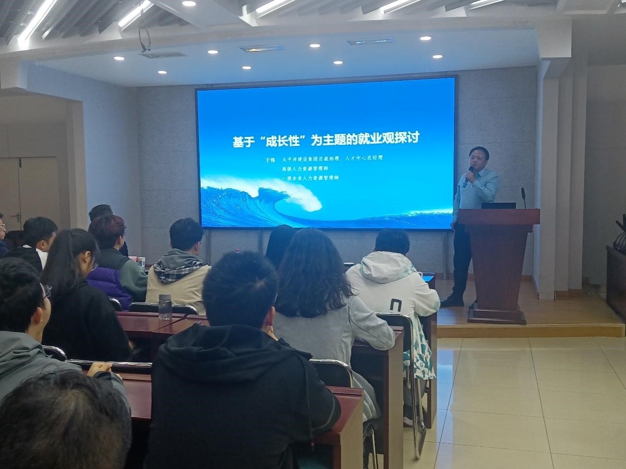 讲座中,于伟以就业观中的“成长性”理论贯穿始终,通过“就业及就业的背景环境”“毕业生的就业视角”“用人单位的用人视角”“太平洋建设的人才培养示例”以及“入职准备”等五个方面帮助同学们以科学的方法认识自我,树立正确的就业观,走好职业人生的第一步。他表示,在步入职场时,不仅需要选择更高更大的平台作为起点,还要从自身、从用人单位角度全方位客观分析,发挥好职业能力培养中的“加速度”。于伟还利用DISC人格分析、贝尔宾团队角色理论等用人单位视角下的人才测评系统帮助大家确立起对职业生涯的认知,启发同学们开展对职业思考的探索,并带领大家在现场观看了《实习生》片段,对电影中表达的职业理念进行了生动指导。于伟最后提到,同学们要对自己的职场核心进行分析,多方面、多层次规划好自己的职业发展。