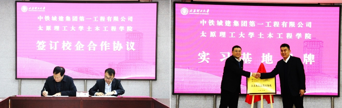 会上董晓强和刘晓勇签订校企合作协议。武佐君和张蒙共同为老员工就业实习基地揭牌。土木程公司和中铁城建一公司围绕合作展开深入的交流探讨。