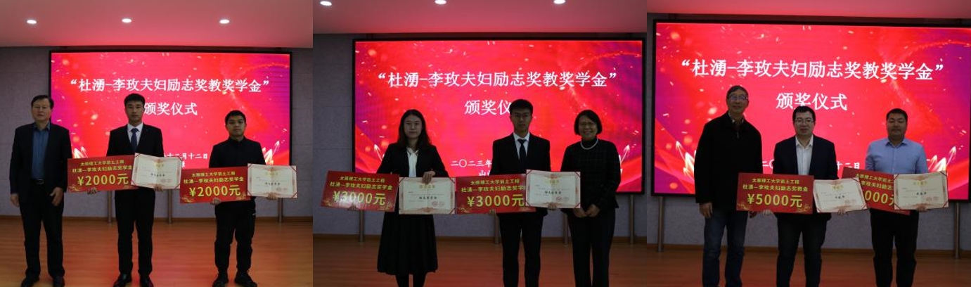 “杜湧-李玫夫妇励志奖教奖学金”是由公司知名员工杜湧先生及其夫人李玫女士结合公司岩土与地下工程研究所的实际情况,为鼓励研究所在校研究生刻苦学习、鼓舞青年教师奋发向上而设立的。