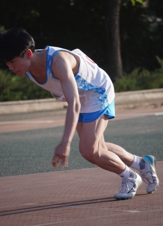 他用汗水和毅力书写着不屈的篇章。他的每一步都展现出拼搏的精神,每一次冲刺都闪耀着坚定的信念。