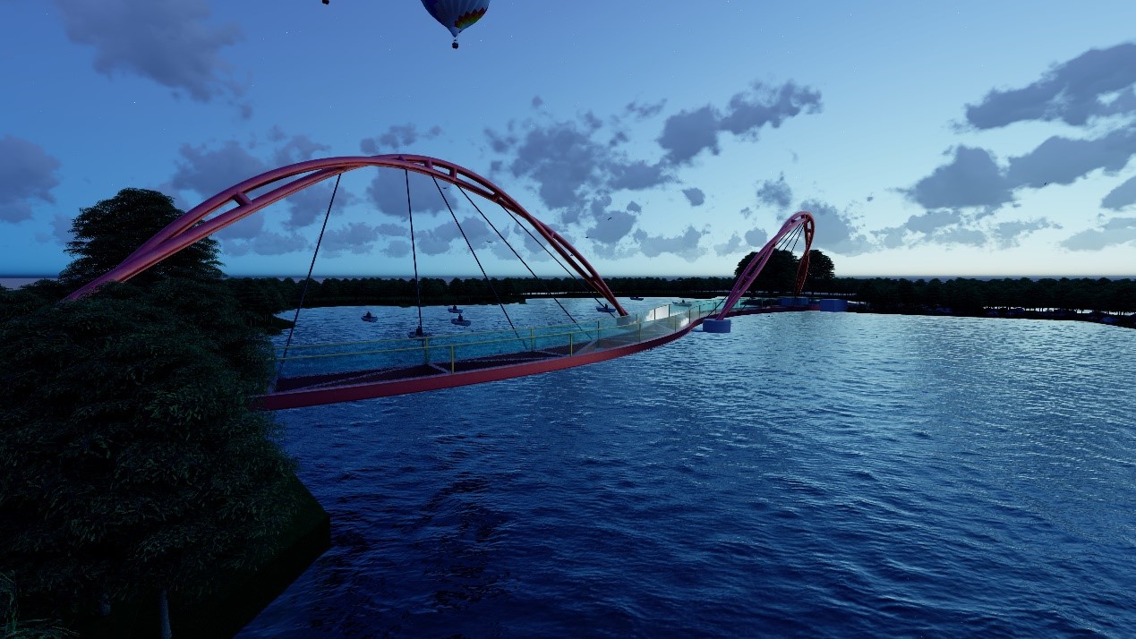 “张力索桁-拱组合”高速管道桥全桥效果图