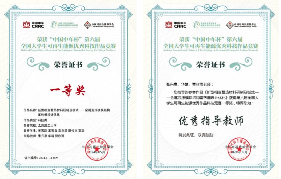 参赛作品题目为《新型相变蓄热材料研制及板式——金属泡沫模块结构蓄热器设计优化》。作品旨在解决可再生能源利用在时间上供需不匹配的问题,通过优化相变热储能技术予以突破。研究团队首先研发了一种新型相变蓄热材料,并设计了一种与之结合的蓄热装置。该研究显著提高了十二水硫酸铝铵的循环稳定性和热工性能,根据工程需求,设计了一种新型双流道模块化装置,实现了与相变材料的高效结合,提升了蓄放热速率和相变均匀性。