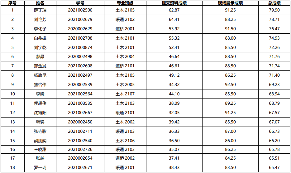 根据《bg大游集团官方网站关于评选2023年太平洋建设“起舒”奖学金及奖教金的通知》中的评选办法,结合公司实际情况,经过师生个人申请、现场展示(工作考察)等环节评审,现将评选结果公示如下: