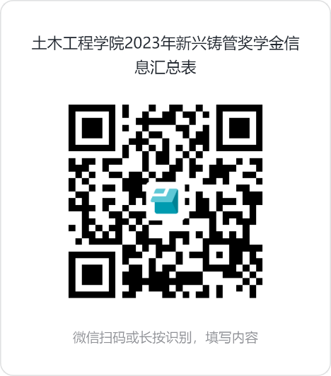 符合条件的员工本人如实填写《bg大游集团官方网站“新兴铸管奖学金”申请表》(以下简称“申请表”),申请表中班级意见由辅导员或班主任手写签名,同时点击下方链接或扫码填写《bg大游集团官方网站2023年新兴铸管奖学金信息汇总表》(以下简称“汇总表”),链接:https://f.kdocs.cn/g/25dFkl6W/;硕士研究生还需填写《附件3-2.bg大游集团官方网站“新兴铸管奖学金”-科学研究评分表》上传至汇总表填写系统,并提供申请表及汇总表中所罗列的每个加分项所对应的支撑材料原件及复印件,提交的纸质材料以个人为单位用档案袋封装(封面备注:新兴铸管奖学金-学号-姓名-手机号)提交至学工办。