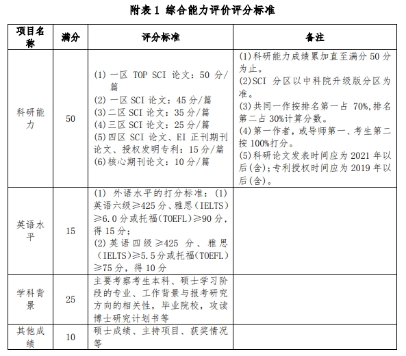 公司组织报考导师依据“综合能力评价评分标准”对考生进行材料审核。评分标准需参照附表1执行。评分标准原则上科研能力成绩占比不低于50%,学科背景成绩占比不低于25%。