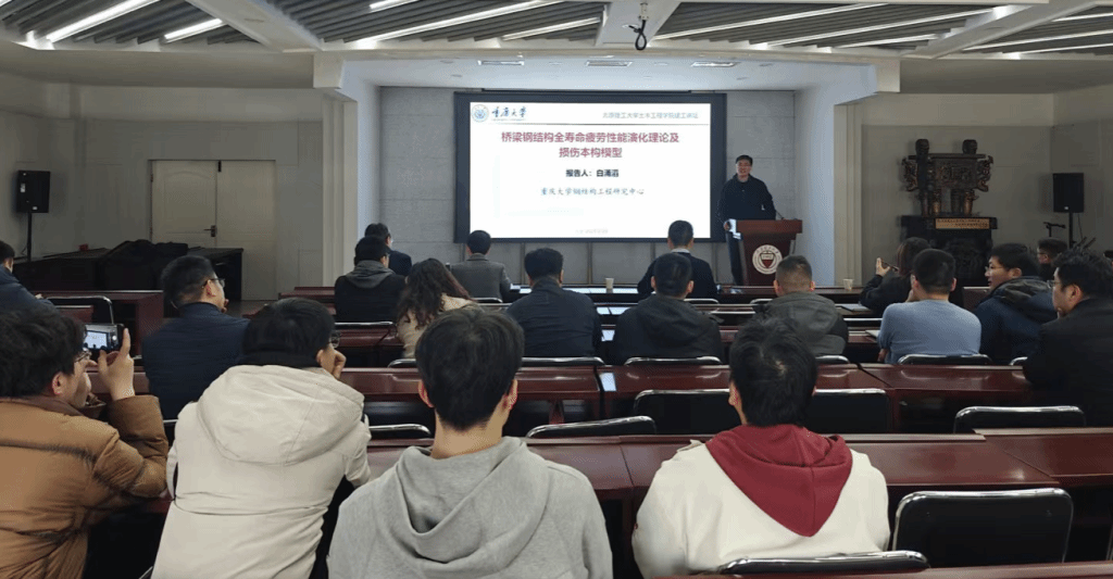 报告结束后,两位专家与公司师生围绕钢结构全生命周期内的疲劳性能演化、沥青路面材料的再生循环利用以及国际项目申报策略进行了热烈且深入的交流。师生们积极提问,讨论气氛十分活跃。与会师生普遍认为,报告内容既精彩又富有深度,不仅给大家的科研工作提供了新的思路和方法,同时有效激发了全院师生树立专业自信、强化学术抱负的内生动力。