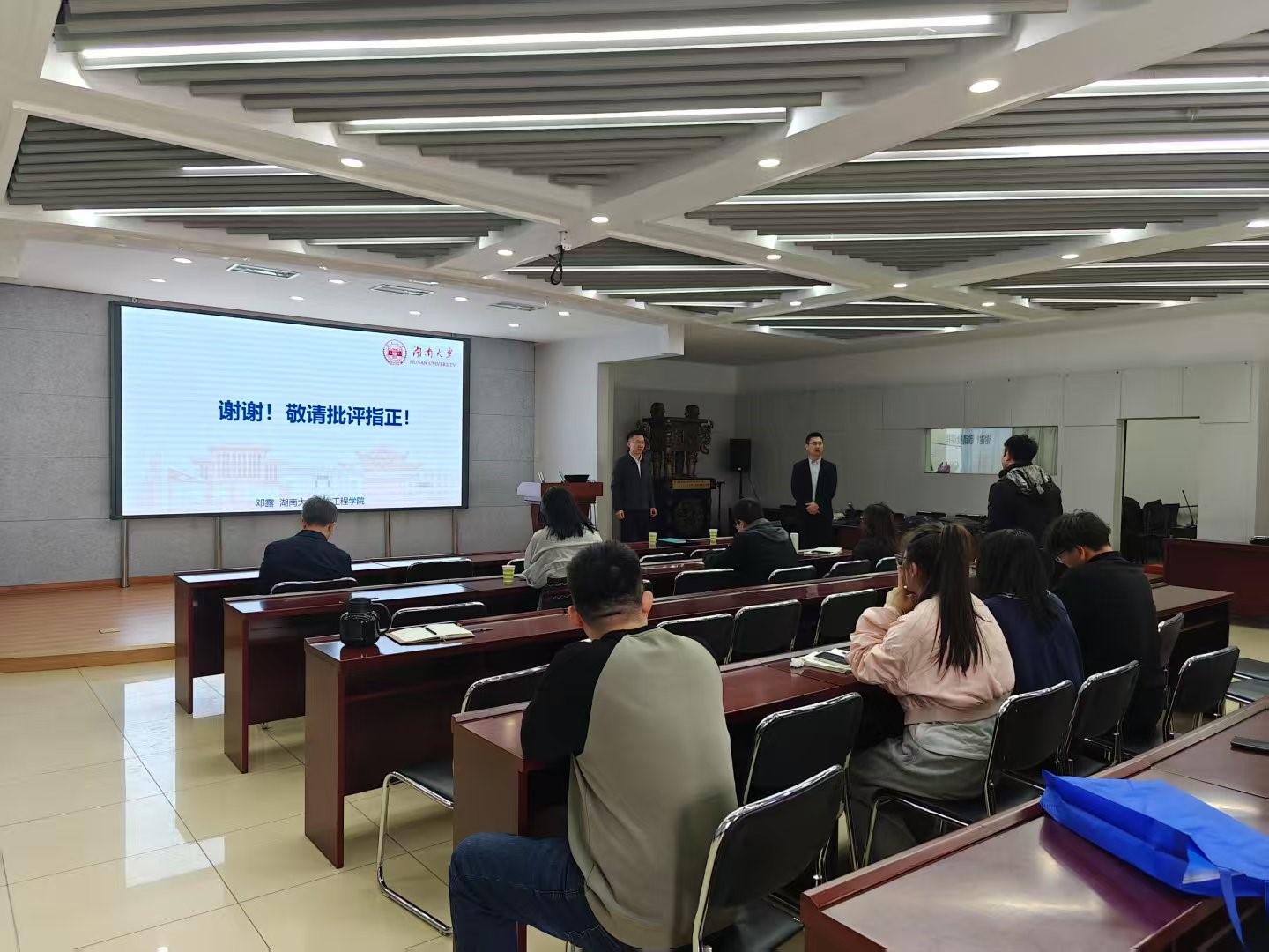 报告结束后,公司师生就智能建造领域的前沿研究方向与研究方法与邓教授进行了深入细致的交流。此外,公司领导及专业负责人等相关人员就智能建造专业的建设进行了热烈的讨论。通过本次报告,不仅有效激起了公司师生对智能建造机器人和机器视觉技术应用的兴趣,更增强了对未来建筑行业智能化转型的信心和决心;同时也为公司顺利申报智能建造专业提供了宝贵经验。