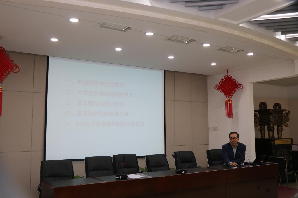 贺教授首先介绍了目前的钢结构行业情况,并以中央电视台总部大楼、上海环球金融中心、台北101大厦等建筑为例,重点对大型复杂钢结构制造及其重要连接技术做了演示,最后结合自己在日本的工程经历,分析了日本的钢结构行业情况和先进的消能减震技术。报告深入浅出,与会师生都表现出浓厚兴趣。