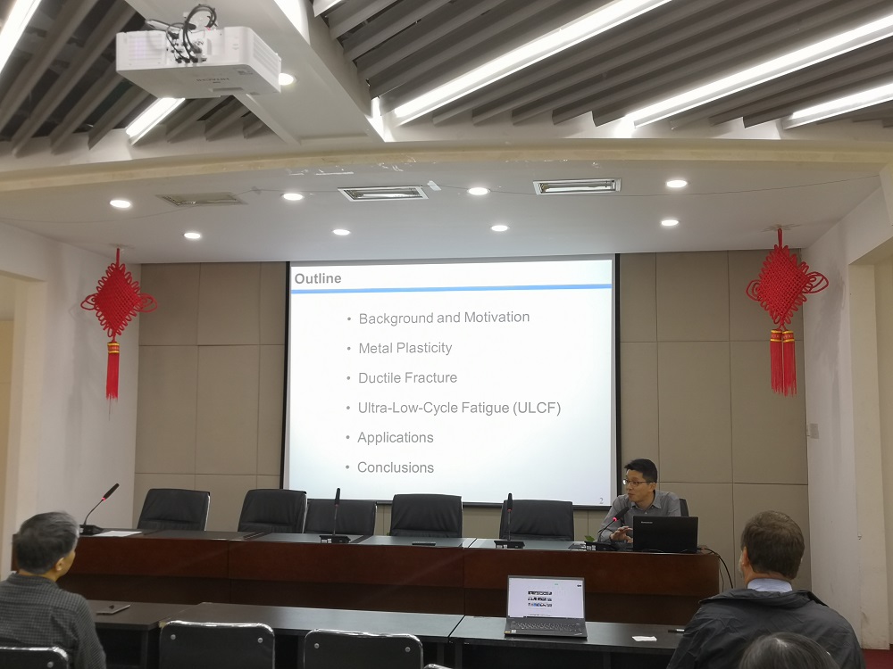 应公司邀请,同济大学贾良玖副教授于2019年5月31日到访公司,在博学馆五层会议室做了题为“循环加载下金属结构细观断裂研究进展”的学术报告,由董晓强副经理主持,土木系师生100余人到场参加。