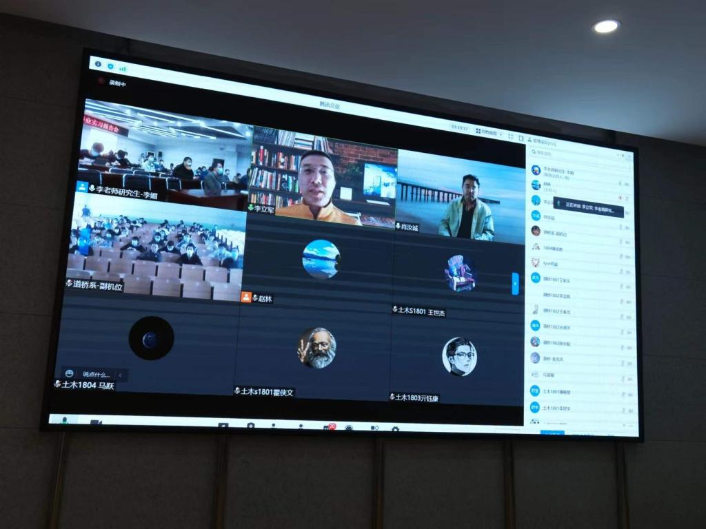 在提问环节,大家踊跃交流。肖教授详尽解答了师生们提出的关于桥梁设计与分析计算的相关问题。2018级全体本科毕业生也参加了本次报告会,对毕业设计具有较强的指导意义。随后,线上线下的指导教师进行了合影留念。