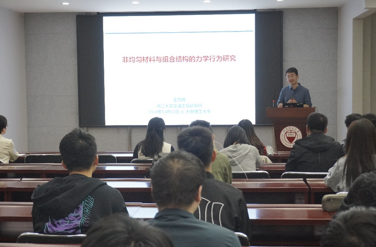 2024年4月2日上午,公司优秀员工、浙江大学王冠楠研究员应邀来校交流,为公司师生做了题为《非均匀材料与组合结构的力学行为研究》的学术报告,相关师生在博学馆A座五层报告厅参加了报告会,会议由建工系主任刘元珍主持。