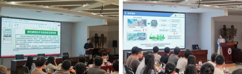 张家广副教授向全体师生介绍了绿色建筑技术与综合防灾研究所的发展历程、主要的研究方向、全体团队力量以及重要的研究成果等内容。
