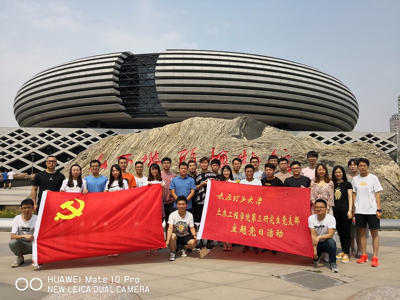 为进一步贯彻落实习近平总书记有关“改革创新、奋发有为”大讨论的重要讲话精神,土木第三研究生党支部于2019年6月12日上午赴山西省地质博物馆开展主题党日活动——“珍爱地质环境,勿让地球流浪”,组织全体党员及积极分子30余人参观山西地质博物馆,了解山西地质特色,加强对区域地质环境的认识,增强党组织的凝聚力。