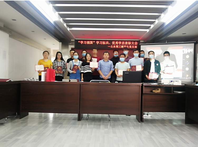 为进一步推动“学习强国”工作的深入有效开展,激发大家持续学习的热情,土木第三研究生党支部5月5日下午15:00在岩土学科会议室开展了“学习强国”学习标兵、优秀学员表彰活动。会议由支部书记何斌同志主持,共有在校和以线上形式的党员43名同志参加。